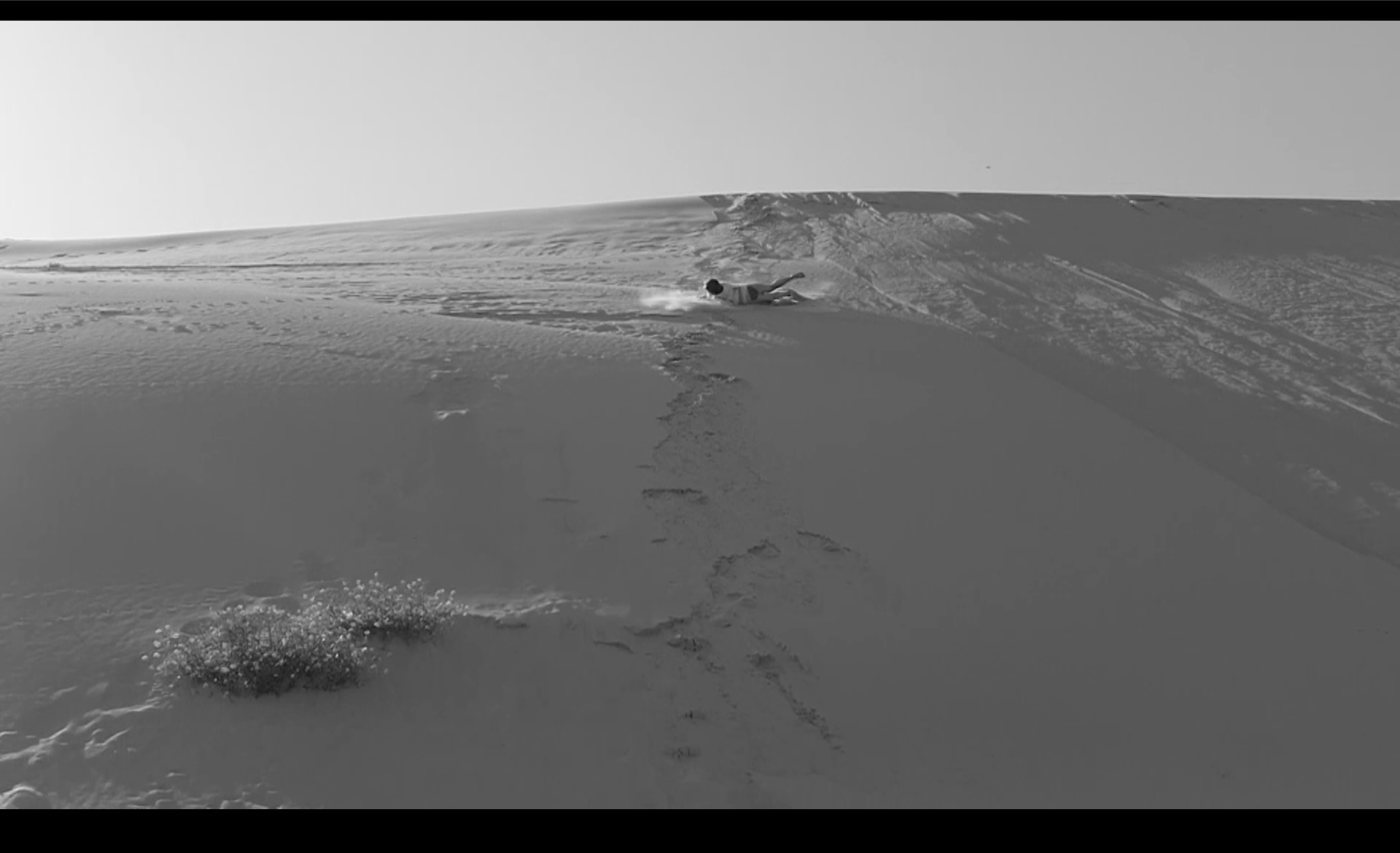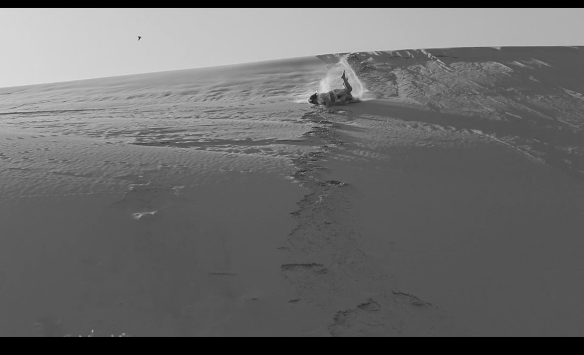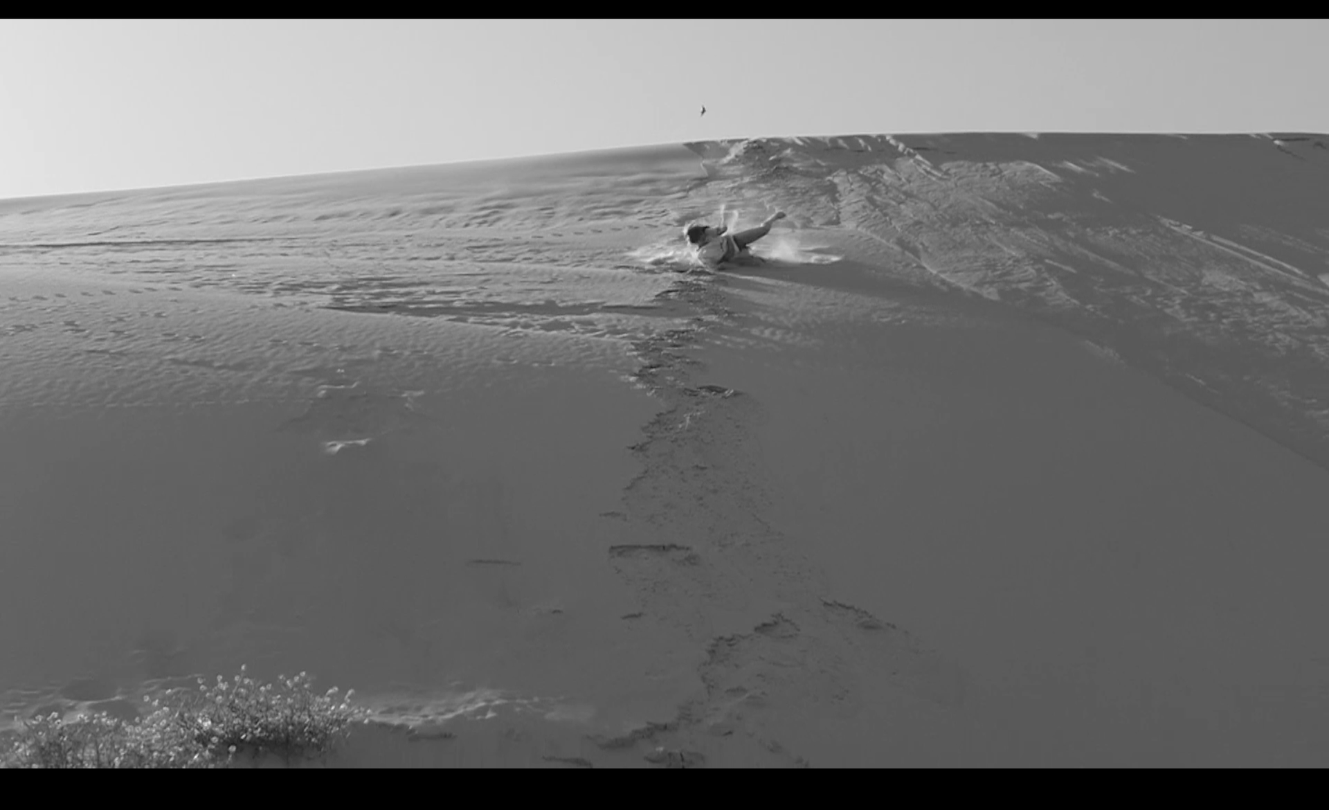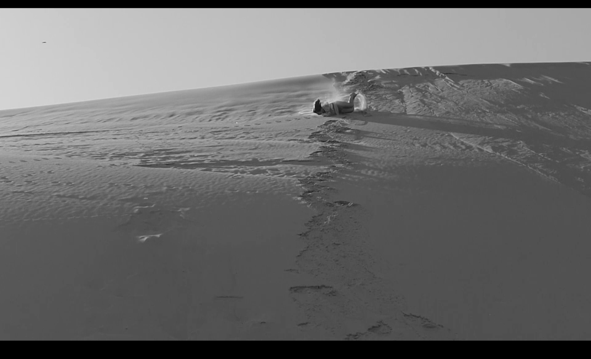 В кадре женщина бросается вниз с песчаной дюны под танго «Последнее воскресенье» (оно еще известно как «Танго самоубийц» или «Утомленное солнце»), написанное Ежи Петерсбургским. Абсурдность ситуации усиливается за счет многократного повторения прыжка: героиня снова и снова скатывается вниз по песку, пока звучит песня, рассказывающая о последней встрече двух влюбленных перед расставанием. Несмотря на драматическое название и сюжет песни, героиня раз за разом остается в живых и повторяет опасный трюк, превращая его в фарс.