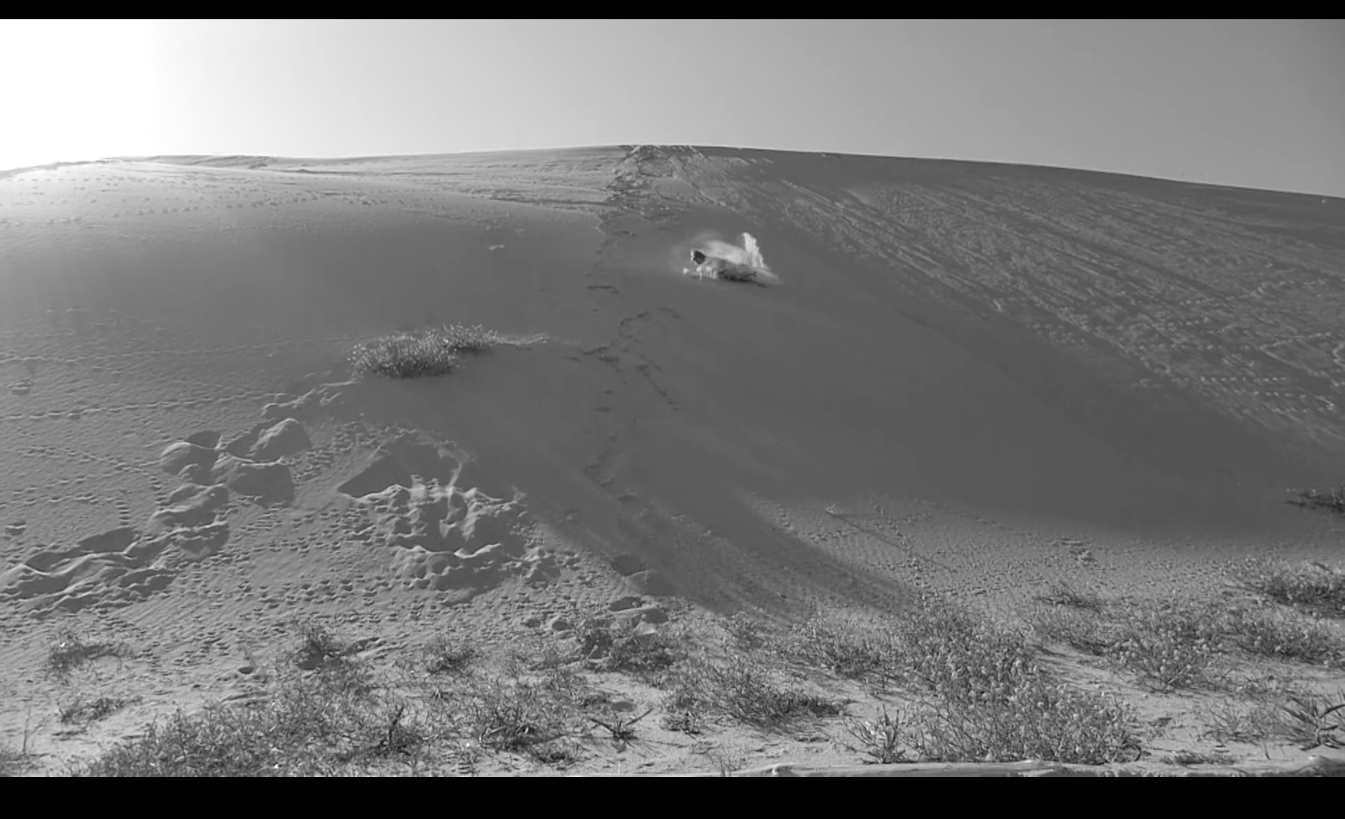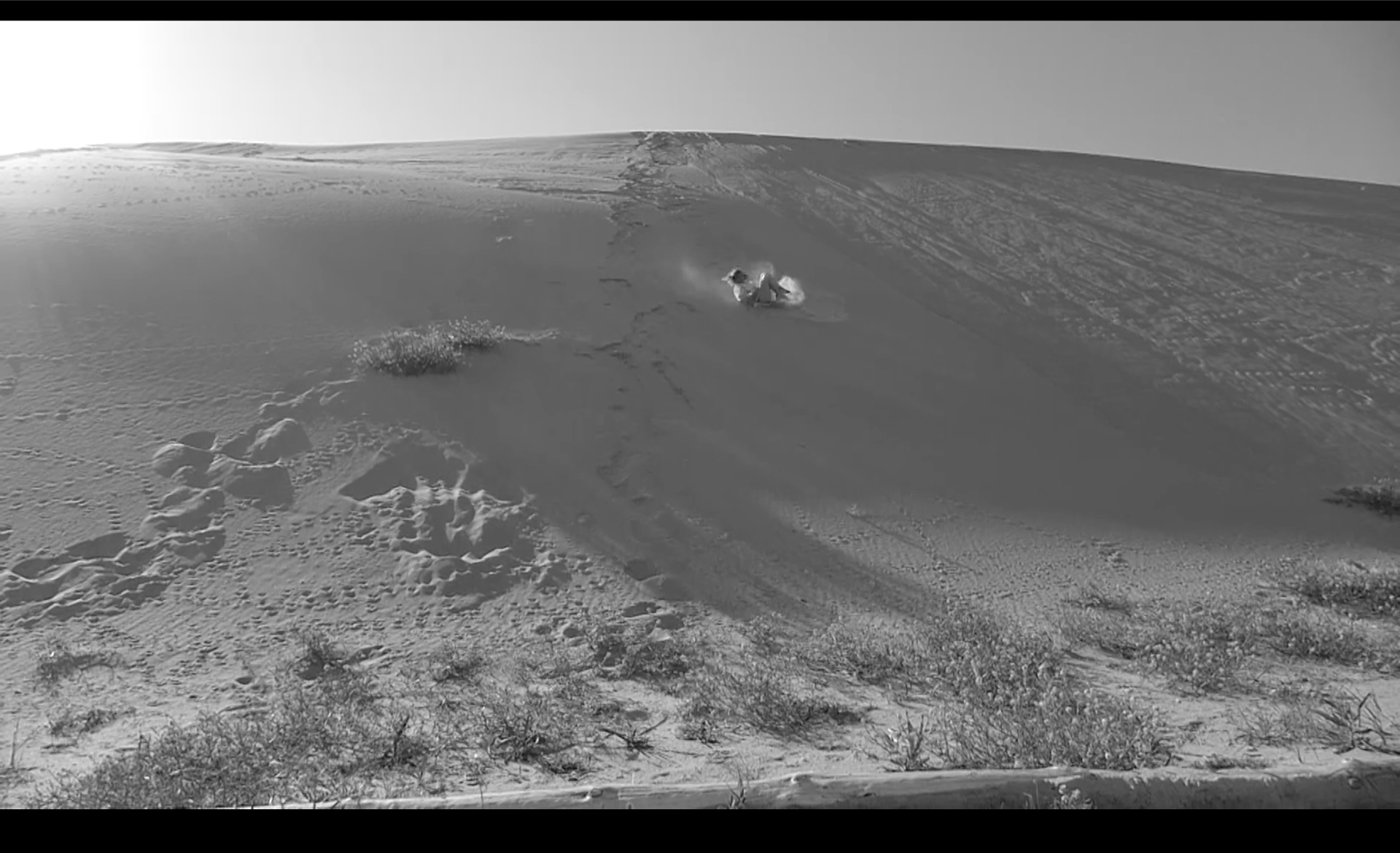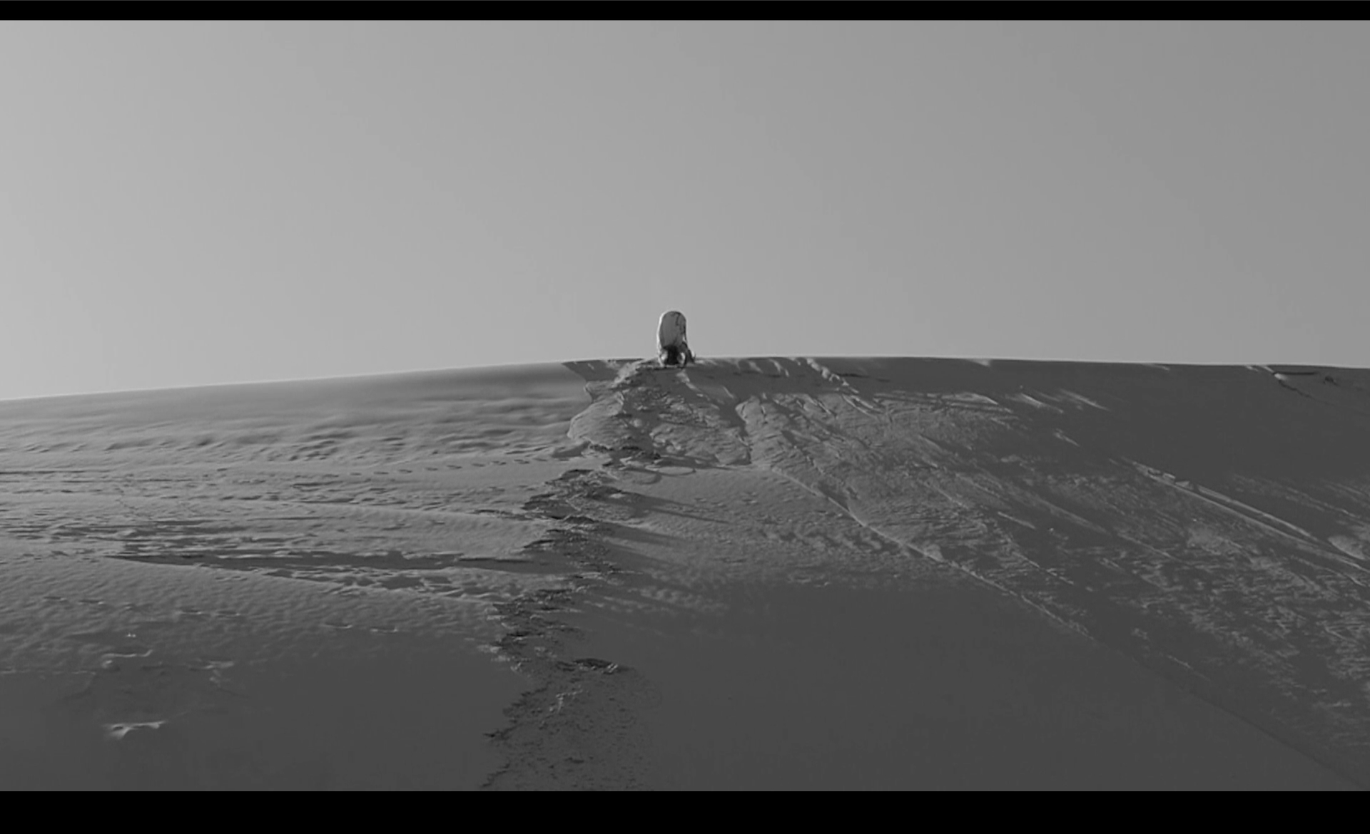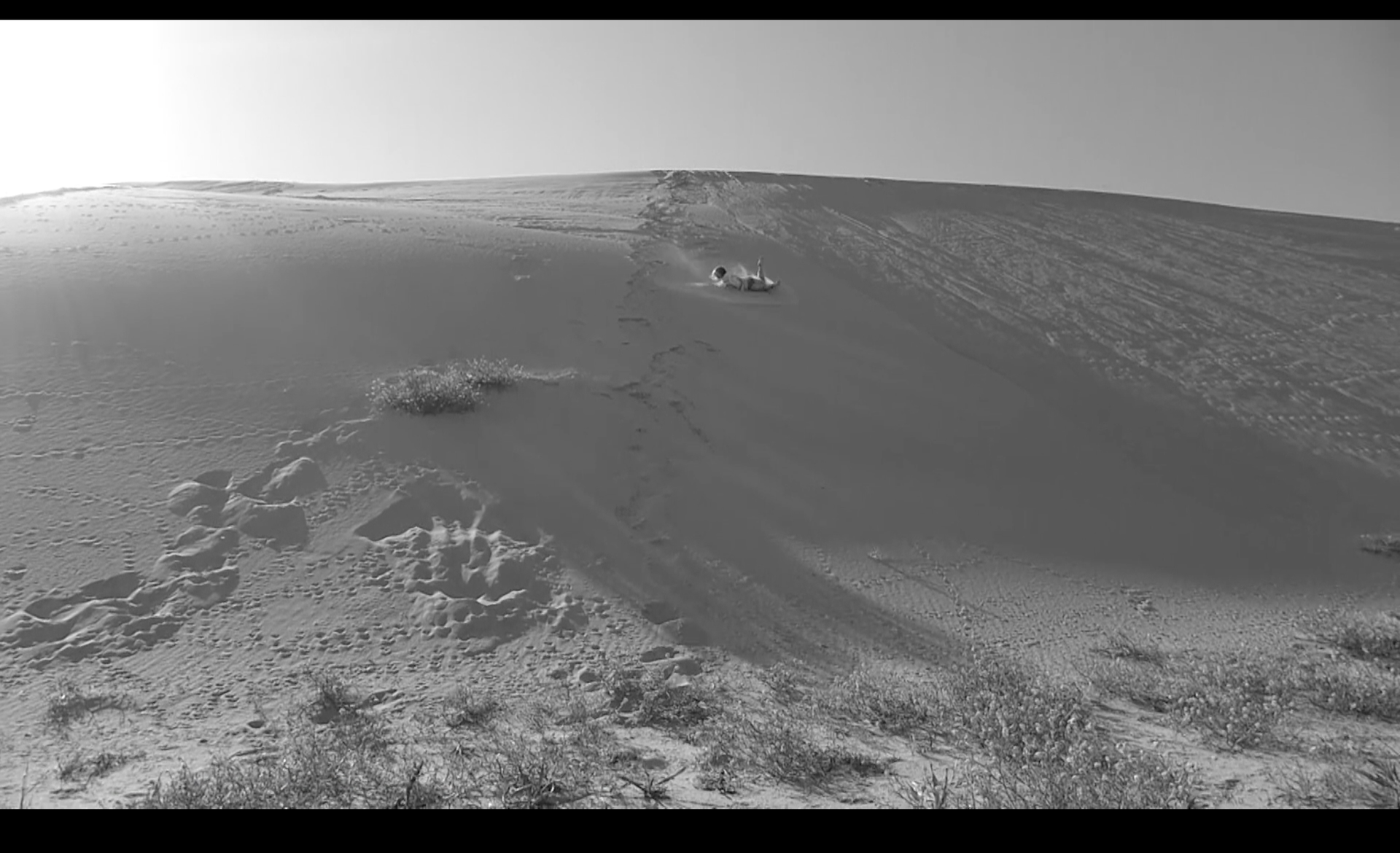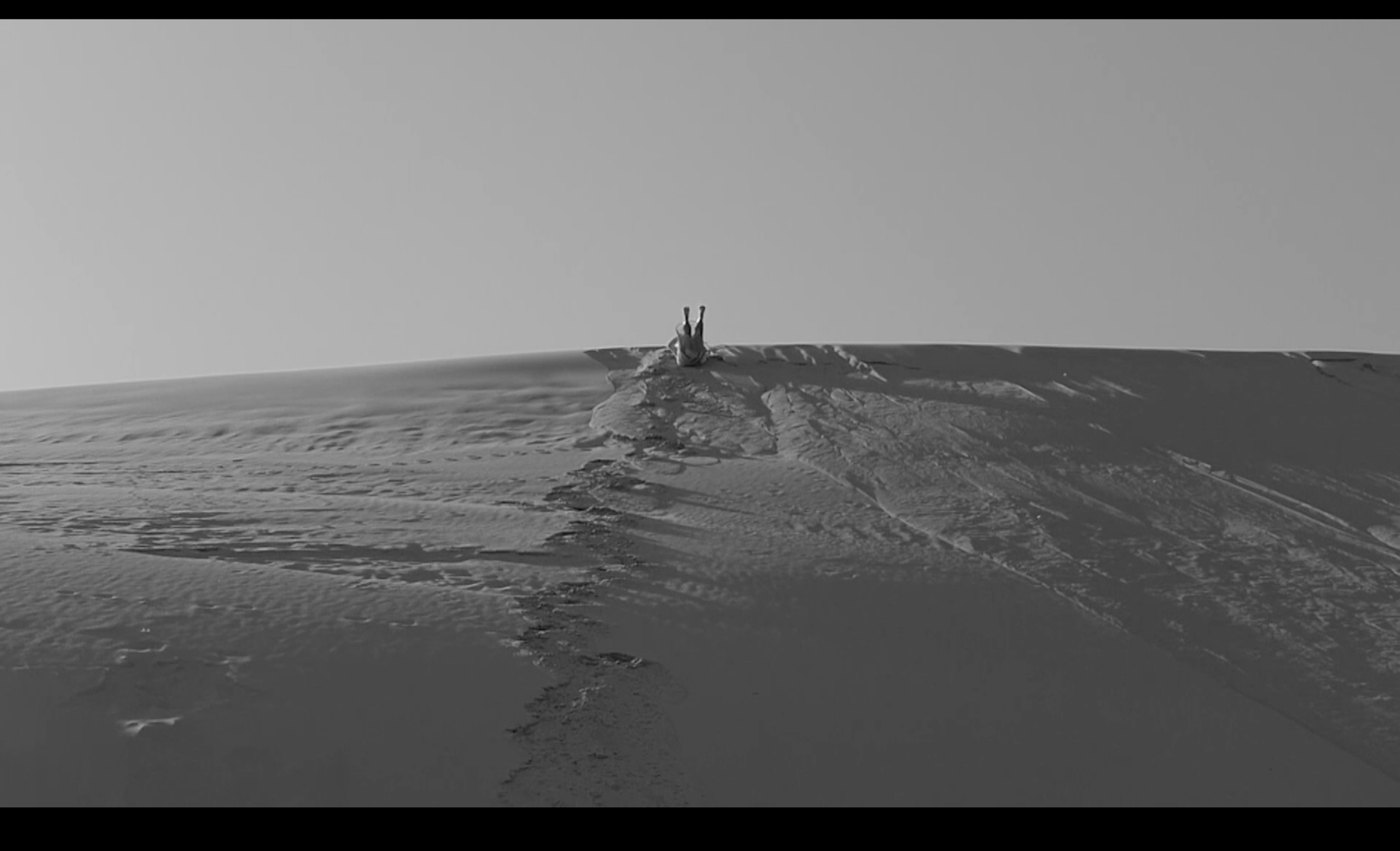 Работа отсылает и к историям первых советских переселенцев Куршской Косы. В послевоенные десятилетия жизнь среди песков и дюн была тяжелой: изолированность, физический труд и суровые природные условия делали повседневность особенно напряженной. Одна из респонденток вспоминала, что иногда становилось настолько тяжело — из-за работы, бытовых трудностей и постоянной усталости, — что возникало желание просто выйти в пески и броситься с дюны вниз головой. Документальные рассказы жителей создают дополнительное измерение: казалось бы комичная и сконструированная ситуация на экране оказывается связанной с реальным опытом жизни в ландшафте, где песчаные дюны становятся пространством сильных человеческих переживаний.