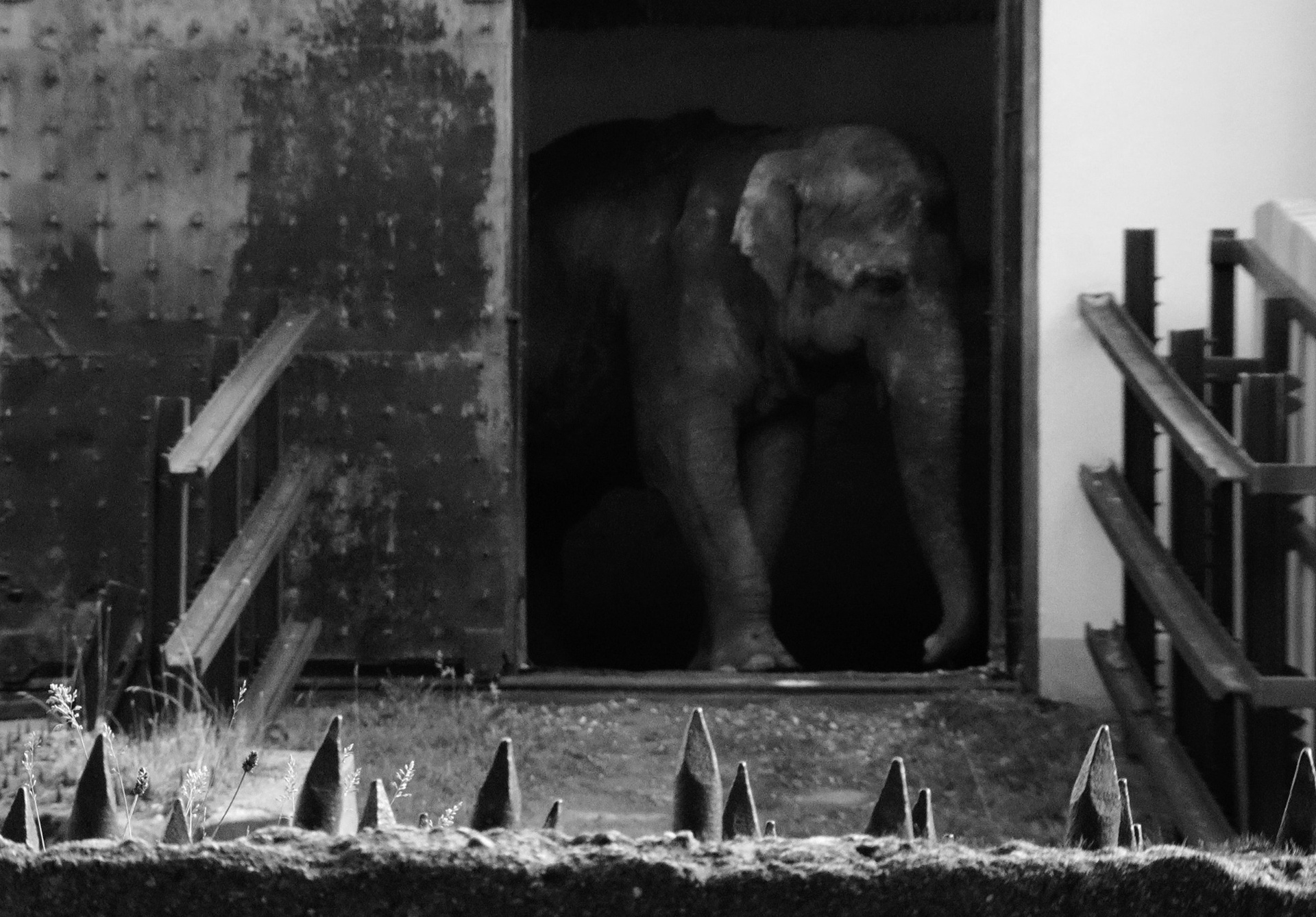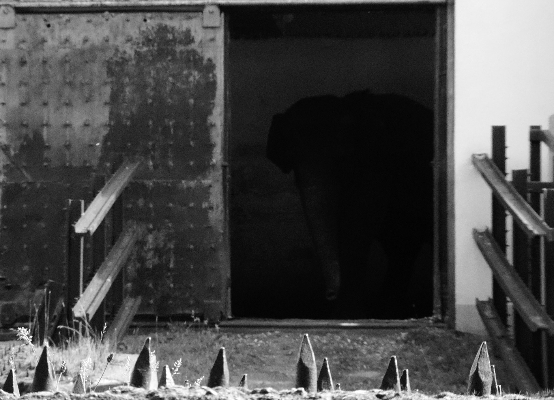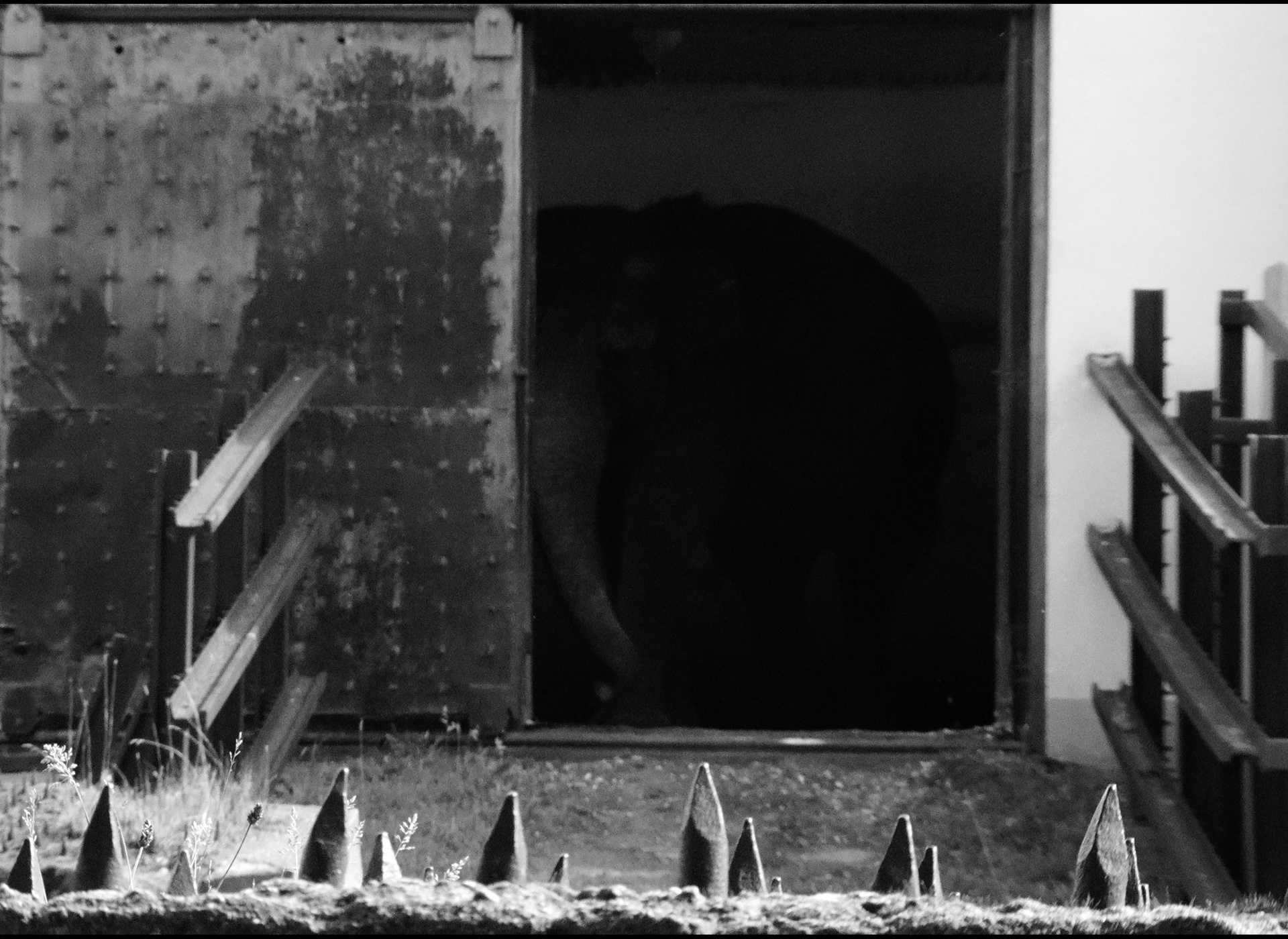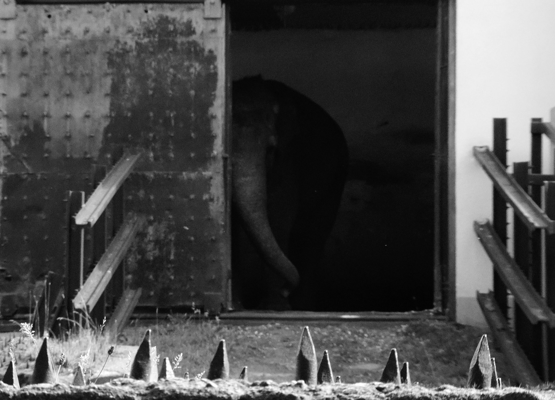 Были дни, когда Преголя не выходила к посетителям, а просто показывалась из слоновника. Сперва где-то в глубине начинало маячить огромное темное пятно, потом оно начинало медленно приближаться к дверному проему. Глаз уже угадывал — вот угольная линия спины, вот тяжелый бок, вот уши, вот хобот, вот Преголя заполняет собой пространство между распахнутыми дверьми целиком — стоит на на границе света и тени, качает головой, обводит взглядом собравшихся (за кадром радостно кричат — вот она, вот она) и медленно разворачиваясь снова исчезает в прохладной темноте. Как на этих картинках.