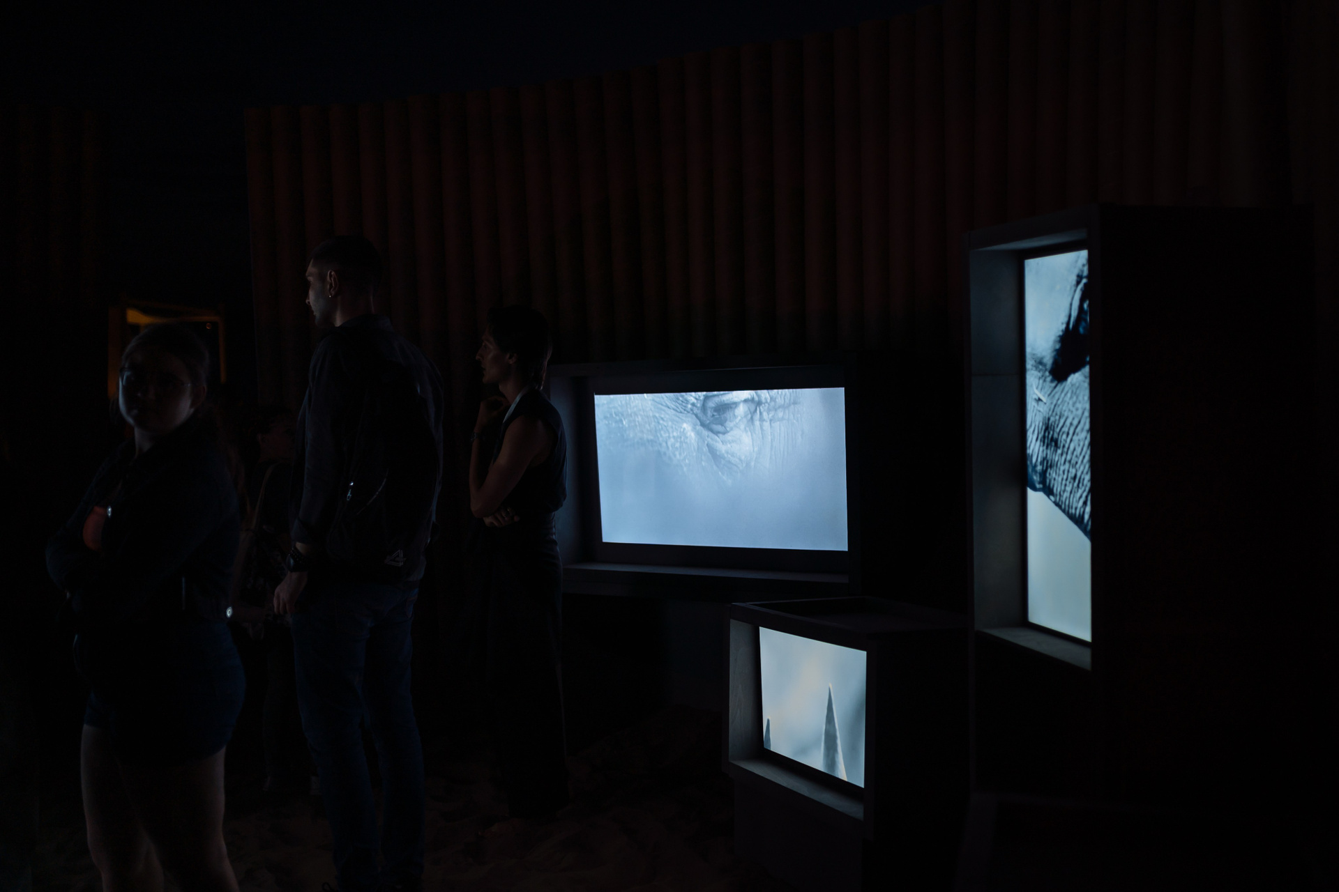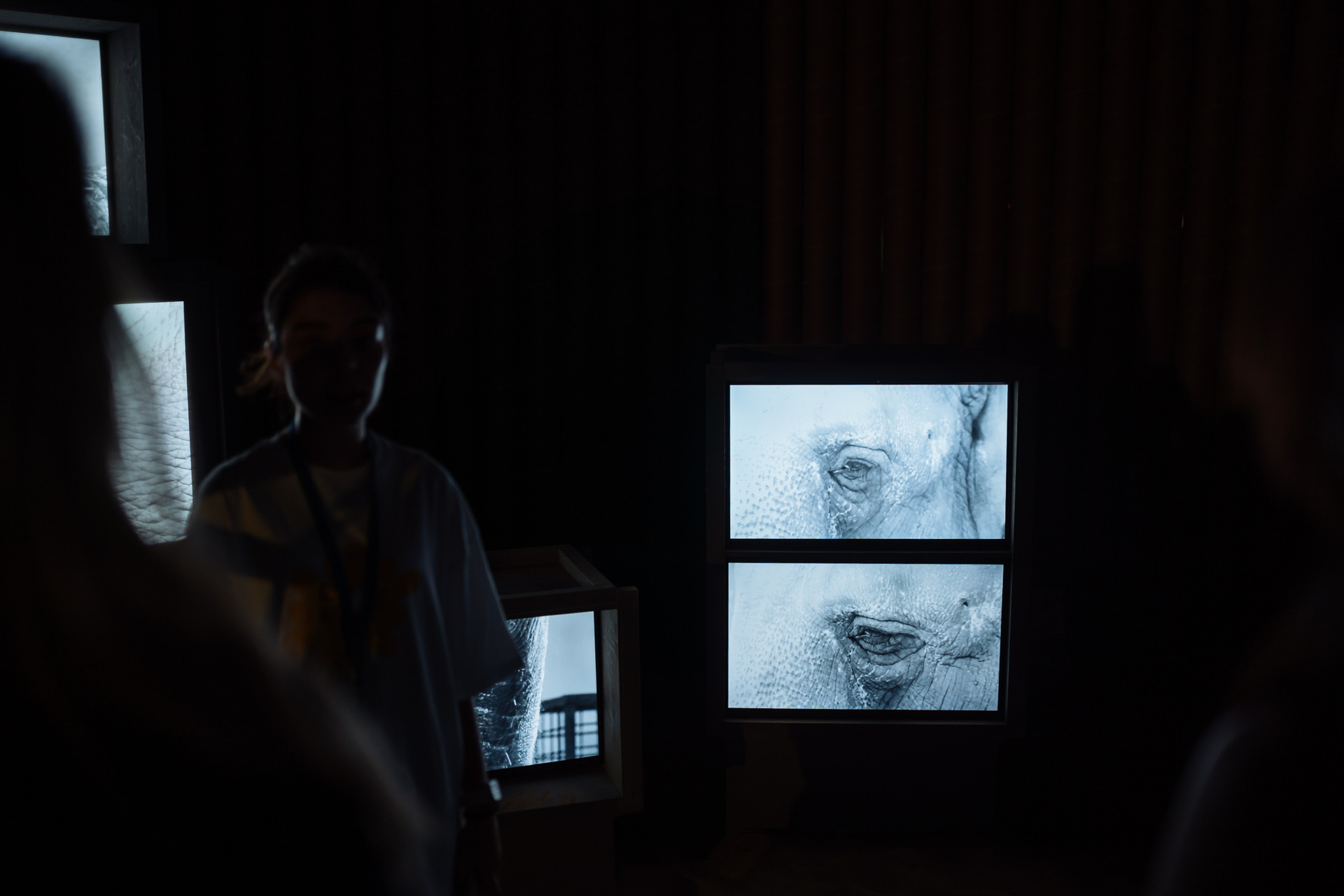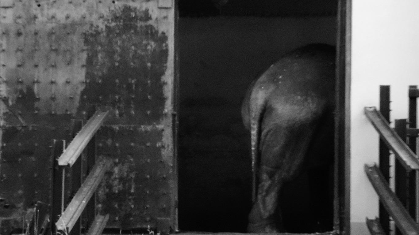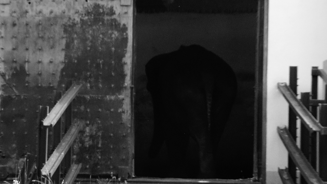 Инсталляционное решение напрямую связано с концепцией проекта — невозможностью целостного взгляда. Зритель оказывается внутри пространства, где объект присутствует физически и одновременно ускользает от полного обозрения: образ слона складывается из отдельных фрагментов. При разработке конструкции художницы обращались к визуальному образу транспортировочных клеток для животных, использовавшихся в цирках и зоопарках, — массивных, утилитарных, грубо собранных ящиков. Эта ассоциация вводит дополнительный исторический слой, связанный с перемещением экзотических животных и кратковременным появлением слонов в разных городах, включая волжские территории.
