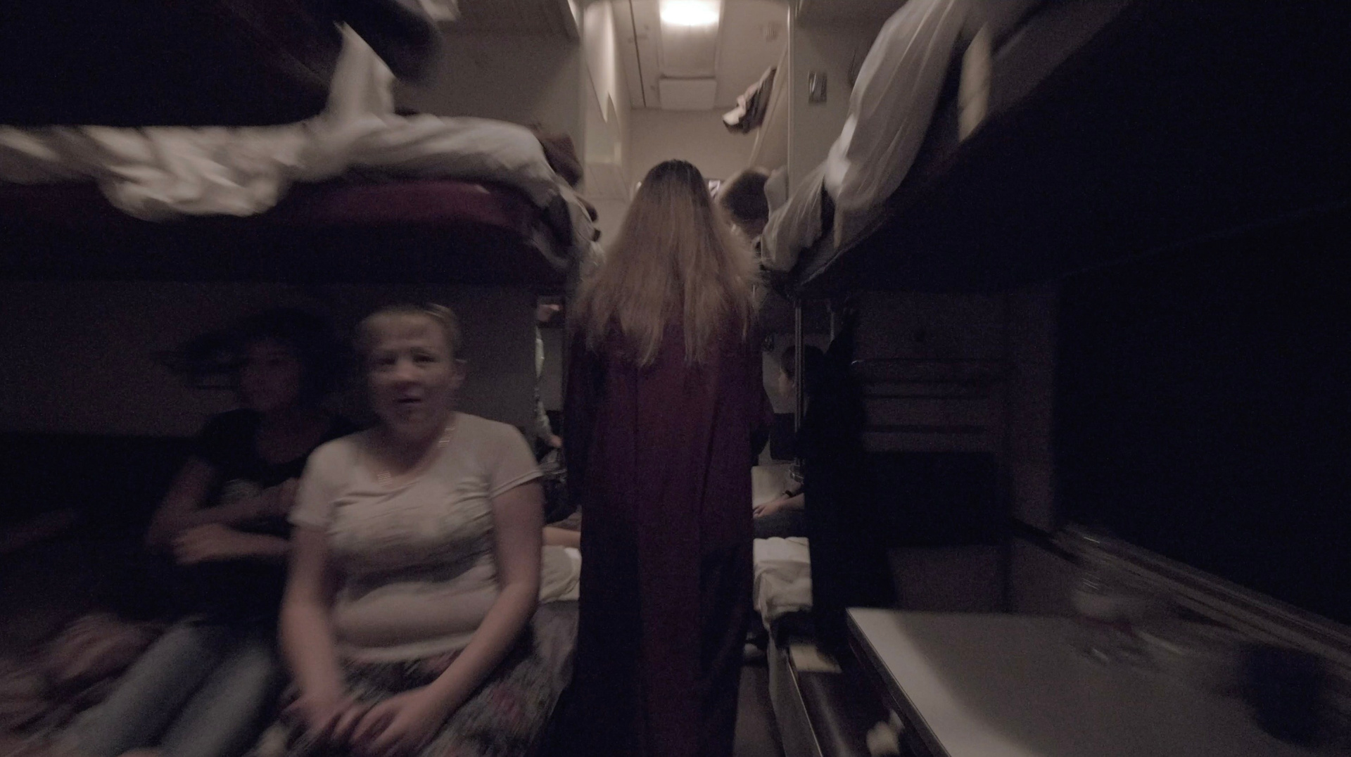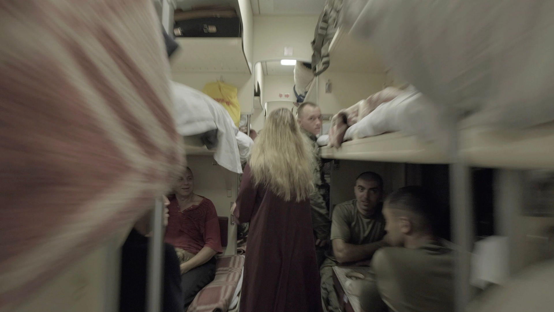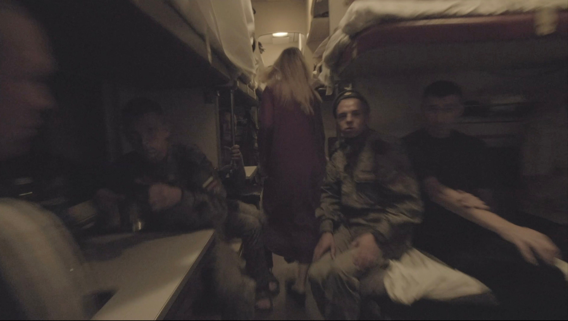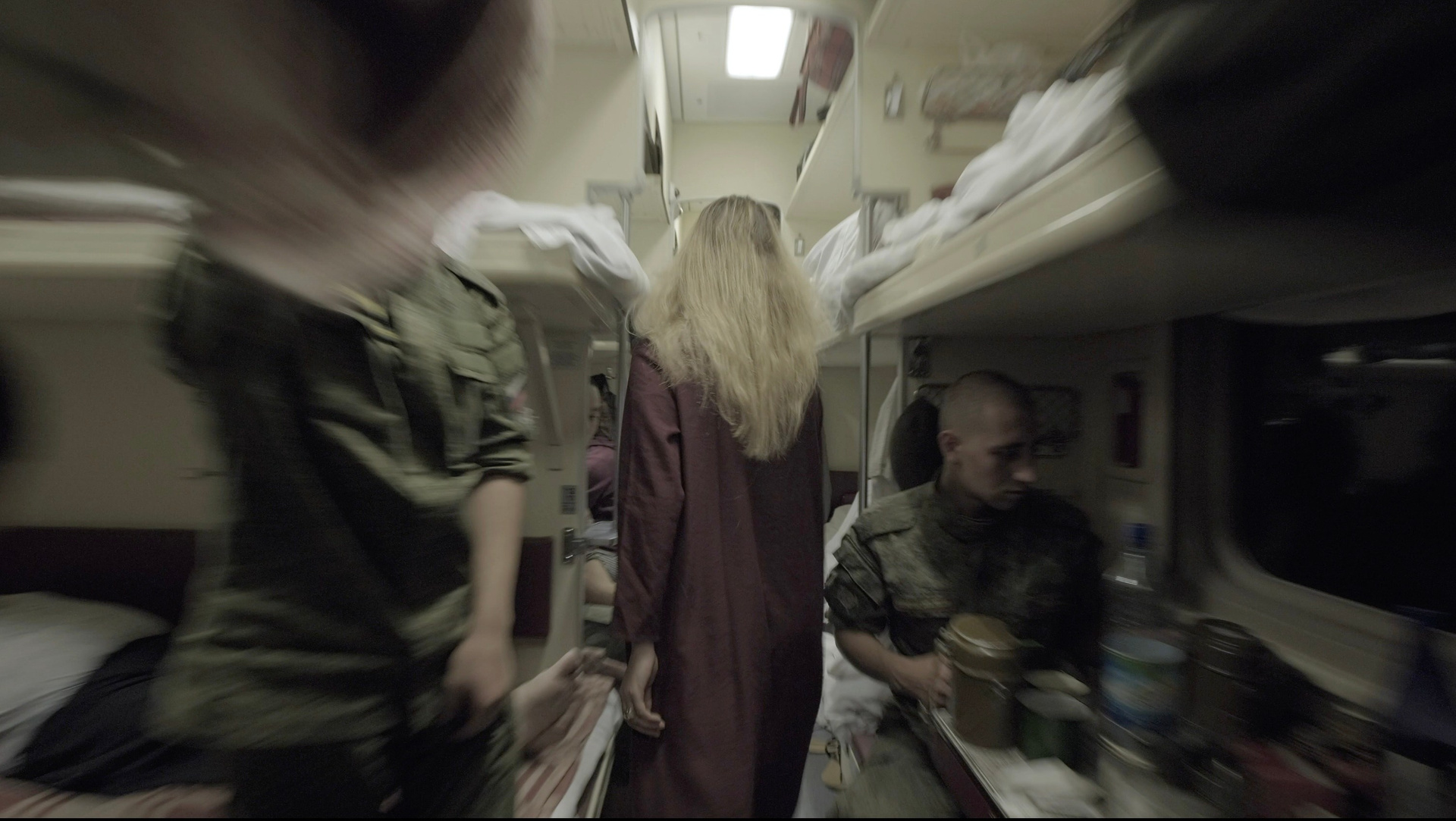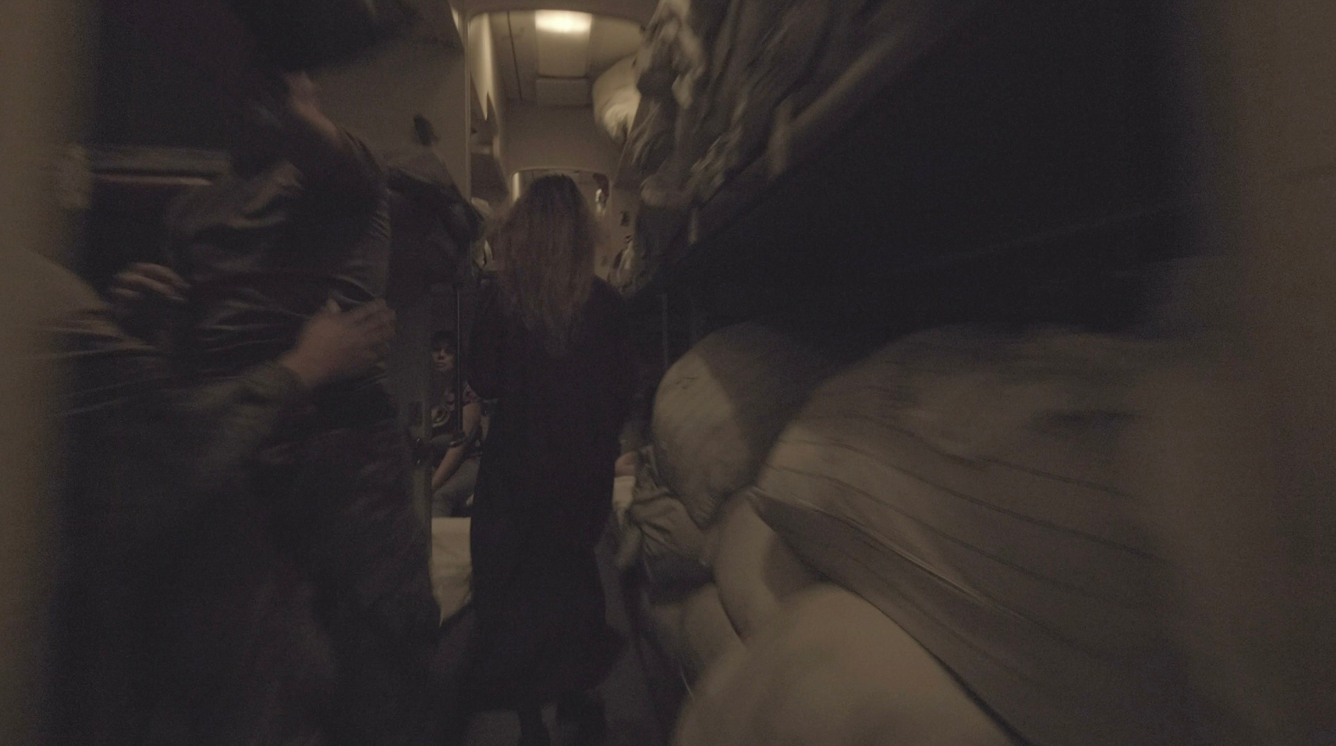 «Транссибирский ковчег» пытается повторить метод операторов Сокурова и представляет пространство поезда, по которому передвигается героиня перформанса, такой же сокровищницей жизней, образов и историй, как и залы Зимнего дворца. Из полумрака тамбуров и плацкартных вагонов камера выхватывает лица стариков и детей, солдат и цыган, семей и одиночек, спящих и бодрствующих. Тех, кто той ночью, как и другие в разные другие годы XX и XIX века, тряслись в поездах, пересекали неохватные расстояния с совершенно разными целями и не всегда по своей воле: уезжали на войну и возвращались с войны, высылались в другие места, отправлялись строить новые города и дороги, искали лучшую долю, счастье и спасение.